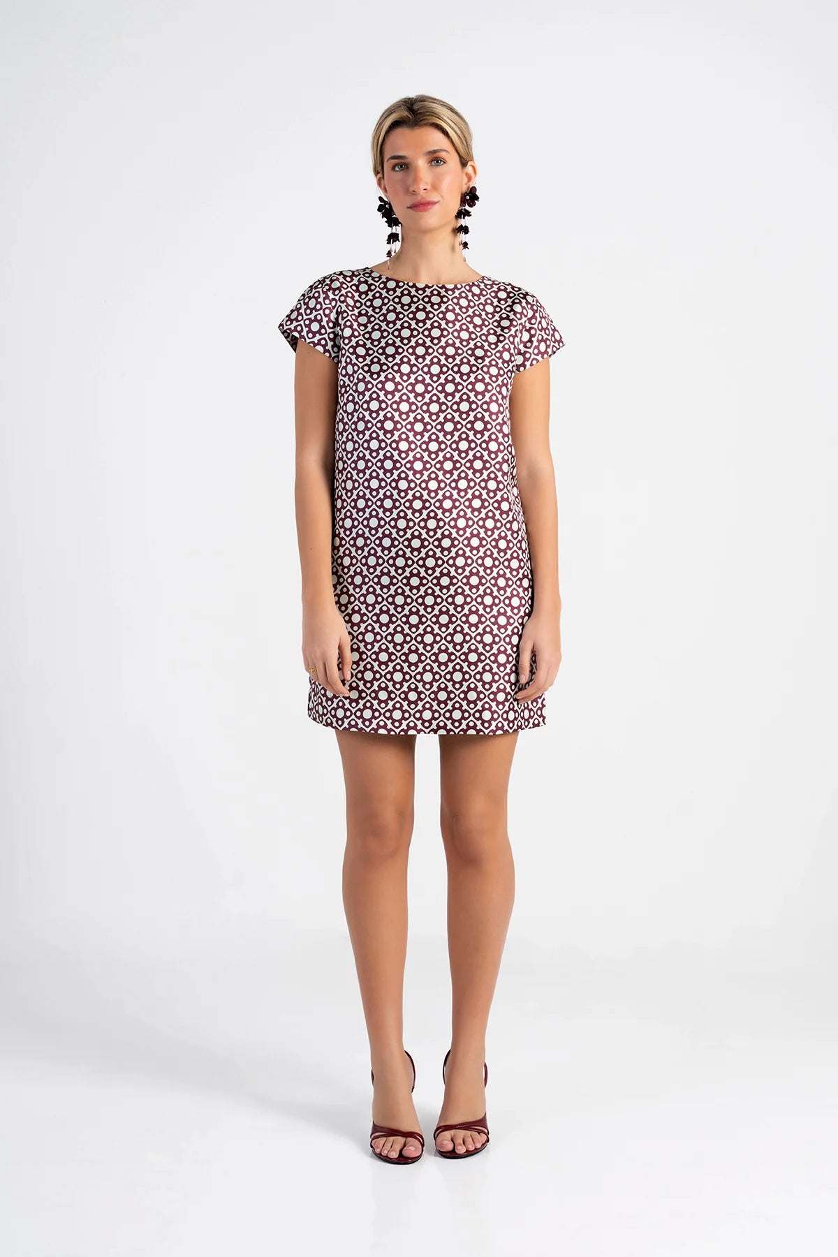 The Elena Shift Dress is an easy, feel-good piece designed to stand out without trying too hard. Cut in a classic shift shape, it features a short length, cap sleeves, and a rounded neckline that keep the silhouette relaxed and flattering. Thoughtful details like hidden pockets and a concealed back zipper make it as practical as it is fun—perfect for a daytime brunch, an evening out, and everything in between. Style it with our Elena Poise Pants for a more relaxed yet editorial look!