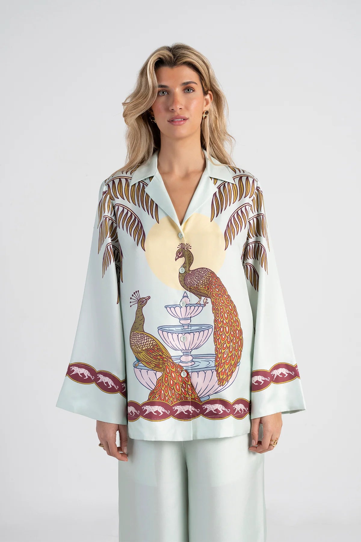 • The Laura Studio Shirt is a relaxed, button-down silhouette designed for effortless, everyday elegance. Featuring a statement print and wide, flowy long sleeves, it drapes beautifully on the body with soft movement. Lightweight and versatile, it can be worn loose for a relaxed feel or styled as a set with the matching Laura Studio Pants for a polished yet laid-back look.